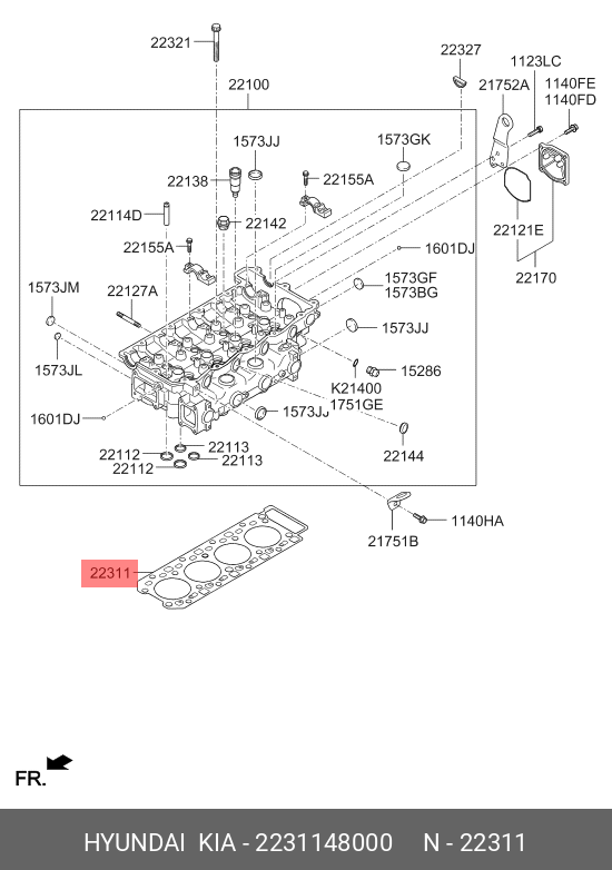 2231148000 HYUNDAI Прокладка головки блока HYUNDAI HD65,78,БОГДАН дв.D4GA MOBIS