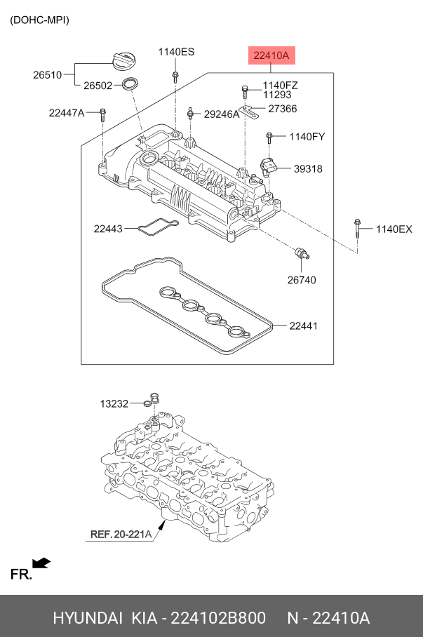 224102B800 HYUNDAI Крышка клапанная EHC0706 G4FC/G4FB/ G4FD/G4FG 224102B800