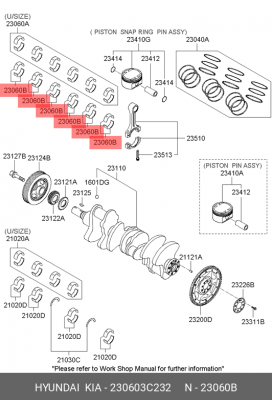 230603C232 HYUNDAI Вкладыши шатунные ECB0703050 12шт к-т 050 G6DA/G6DB 230603C201