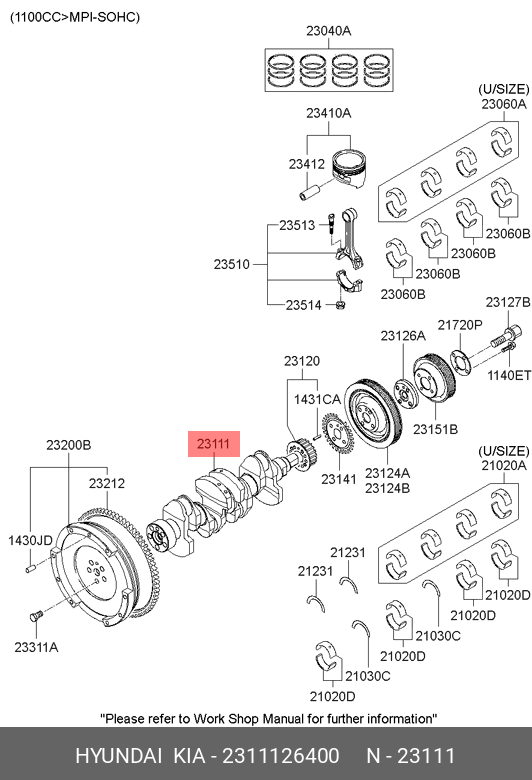 2311126400 HYUNDAI Вал коленчатый 4 CYL
