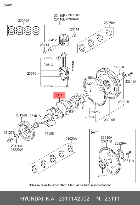 2311142002 HYUNDAI Вал коленчатый 4 CYL