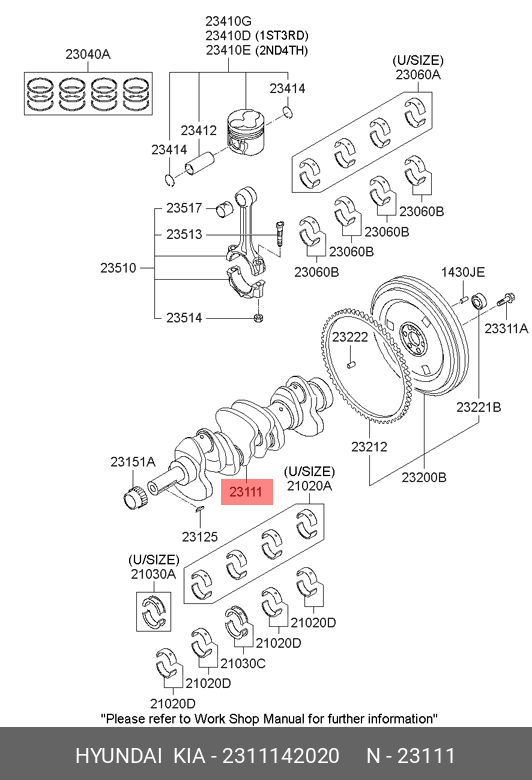2311142020 HYUNDAI Вал коленчатый EMC0904 D4BH/D4BF/4D56/D4BX/D4BA 23111-42002