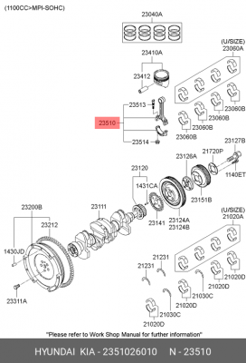 2351026010 HYUNDAI Шатун ECR0746 Accent/Goetz 02-10 1.3 L SOHC G4EA 2351026030