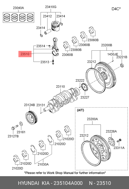 235104A000 HYUNDAI Шатун ECR0705 D4CB/STAREX/PORTER/H-1/SORENTO 235104A500