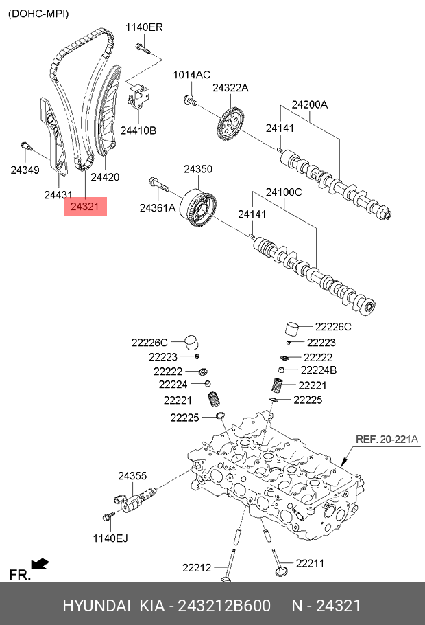 243212B600 HYUNDAI Комплект ГРМ ECC0731 / 243212B620 G4FJ с 2012 --> 1.6L Turbo Kia/Hyundai (4 пози