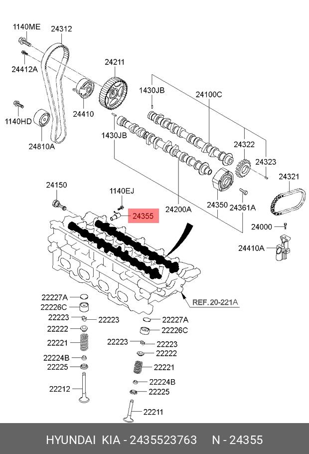24355-23763 HYUNDAI Клапан изменения фаз ГРМ ECA0720 / 2435523800 G4GC с 09г. Hyundai 2.0