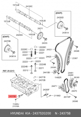 243752G200 HYUNDAI Клапан электромагнитный изменения фаз ГРМ выпускной ECAE0708 G4KD/G4KE с 09--- 2