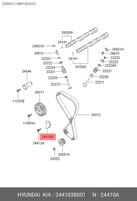 2441038001 HYUNDAI Натяжитель ремня ГРМ DOHC 2/2.4L HYUNDAI Sonata V/Santa Fe/Sorento MOBIS