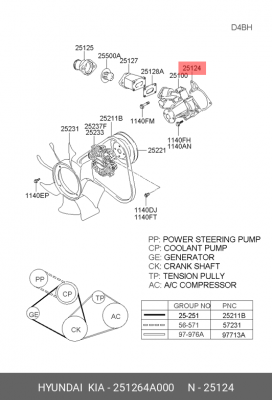 251264A000 HYUNDAI Прокладка HYUNDAI Porter 2,Starex H-1 (04-) дв.D4CB водяного насоса OE