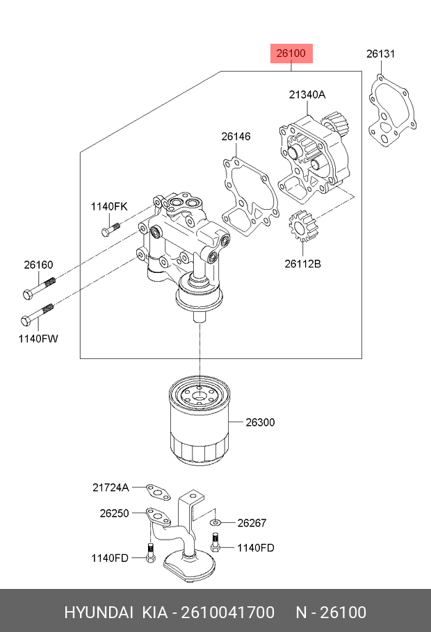2610041700 HYUNDAI Насос масляный HYUNDAI HD65,72,78,County дв.D4AL OE