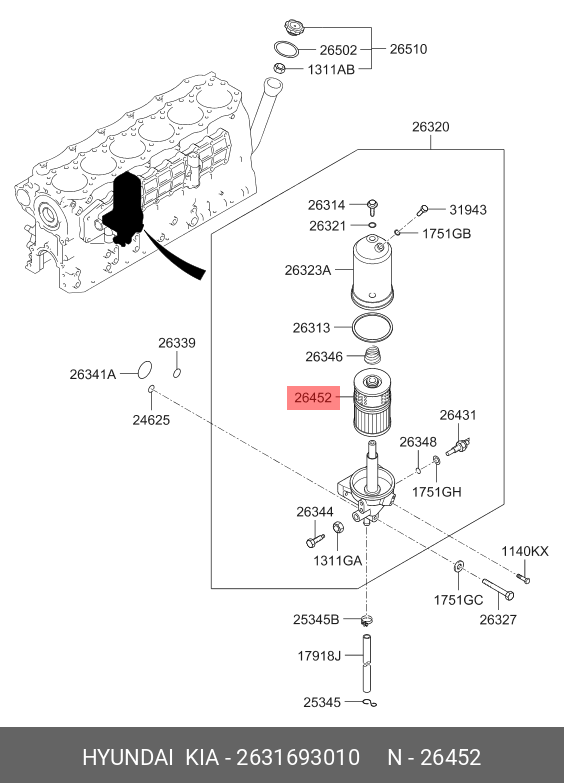 2631693010 HYUNDAI Фильтр маслянный HYUNDAI HD120,AeroTown дв.D6BR OE