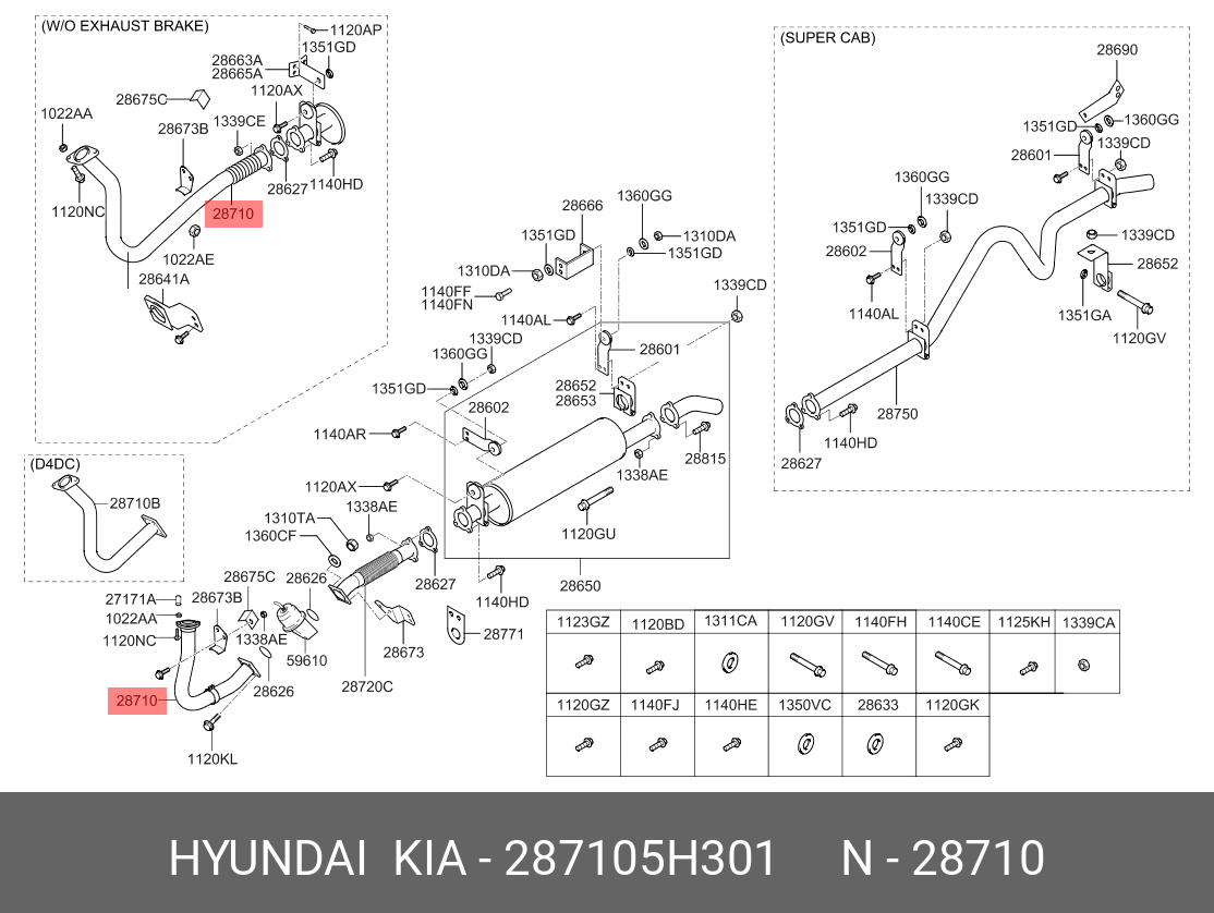 287105H301 HYUNDAI Труба выхлопная HYUNDAI HD65,72,78 КПП-M035S5 передняя OE