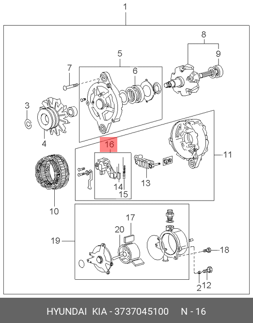 3737045100 HYUNDAI Регулятор HYUNDAI HD65,72 дв.D4AL,D4AF напряжения генератора OE
