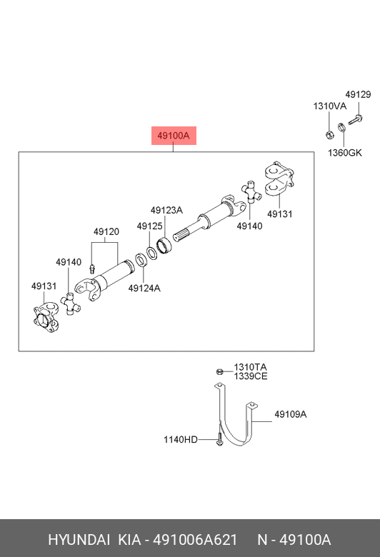 491006A621 HYUNDAI Вал карданный HYUNDAI HD120 (E/LONG) дв.D6DA22 задний OE