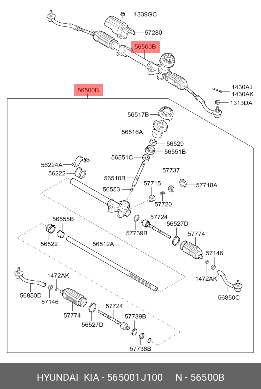 565001J100 HYUNDAI Рулевая рейка с тягами механическая m50491nw