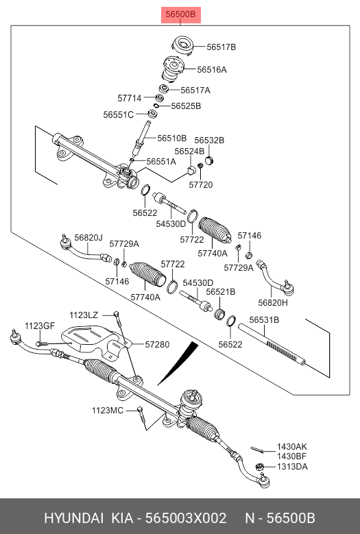 565003X002 HYUNDAI Рулевая рейка с тягами механическая m50371nw