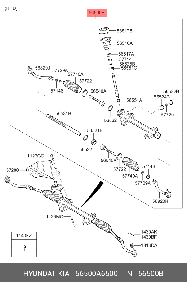 56500A6500 HYUNDAI Рулевая рейка с тягами механическая m50471nw