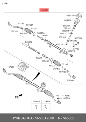56500A7600 HYUNDAI Рулевая рейка с тягами механическая m50471nw