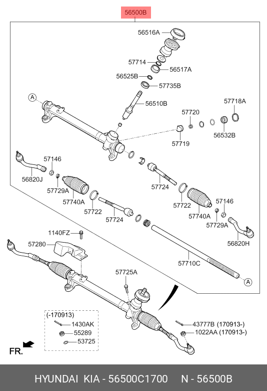 56500C1700 HYUNDAI Рулевая рейка с тягами механическая m51391nw