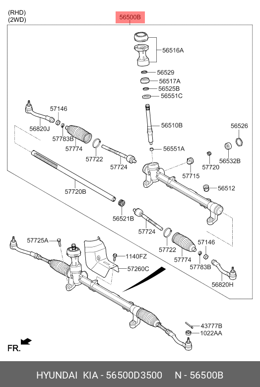 56500D3500 HYUNDAI Рулевая рейка с тягами механическая m51801nw