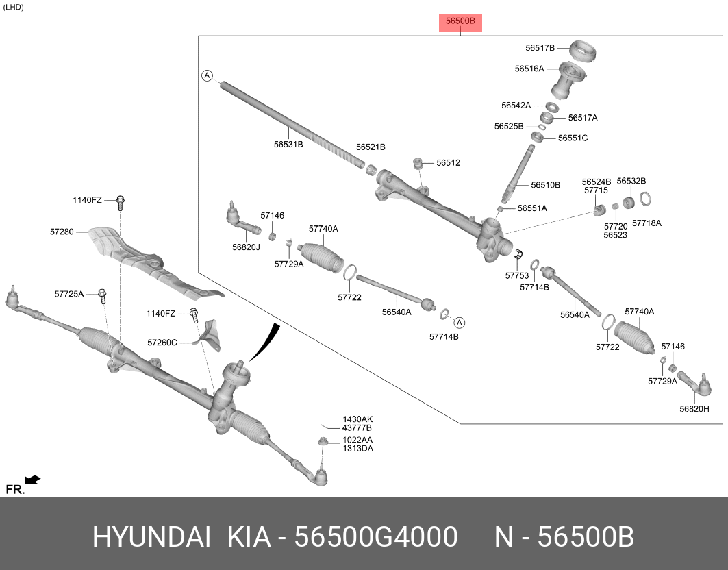 56500G4000 HYUNDAI Рулевая рейка с тягами механическая m52151nw