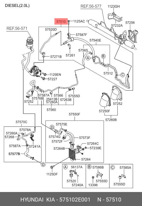 575102E001 HYUNDAI Напорный шланг от насоса к рейке hph0101