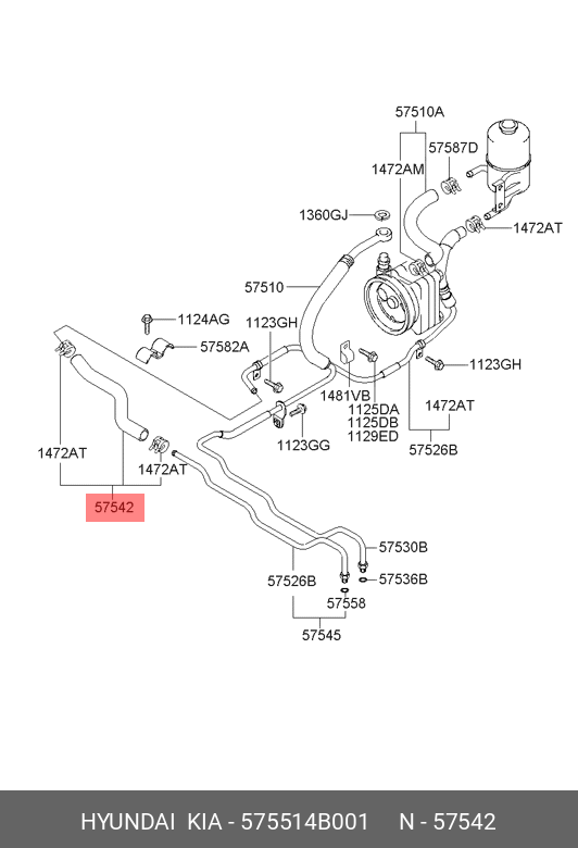 575514B001 HYUNDAI Шланг HYUNDAI Porter от ГУРа к бачку сред.часть OE