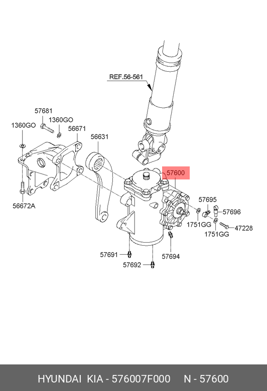 576007F000 HYUNDAI Рулевой редуктор гидравлический rg8108nw