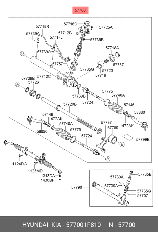 577001F810 HYUNDAI Рулевая рейка с тягами гидравлическая r21441nw