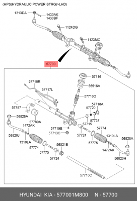577001M800 HYUNDAI Рулевая рейка с тягами гидравлическая r25961nw