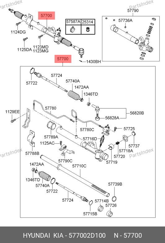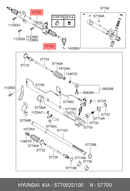 577002D100 HYUNDAI Рулевая рейка с тягами гидравлическая r20491nw