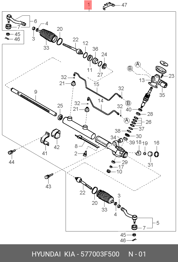 577003F500 HYUNDAI Рулевая рейка с тягами гидравлическая r26171nw