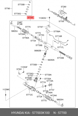577003k100 HYUNDAI Рулевая рейка с тягами гидравлическая r21561nw