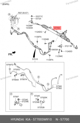577003M910 HYUNDAI Рулевая рейка с тягами гидравлическая r27361nw