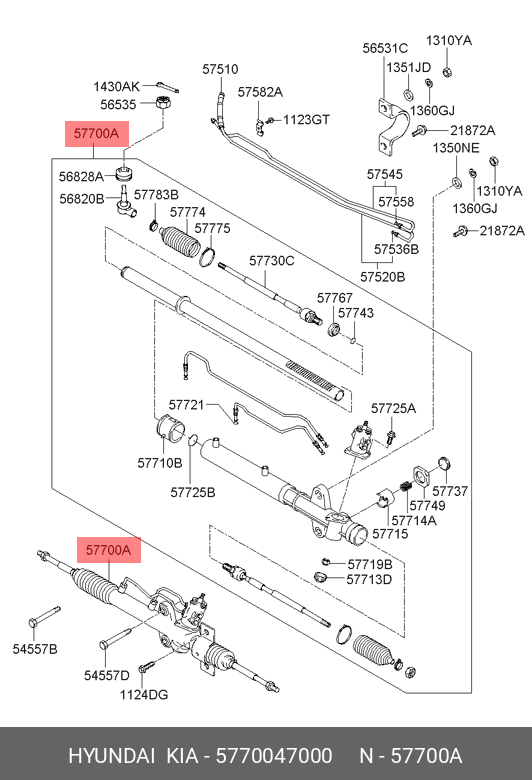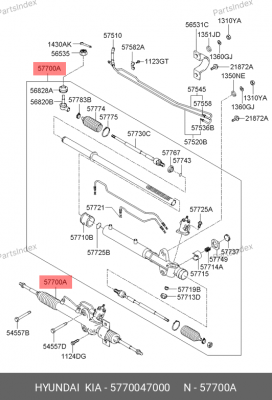 5770047000 HYUNDAI Рулевая рейка с тягами гидравлическая r29351nw