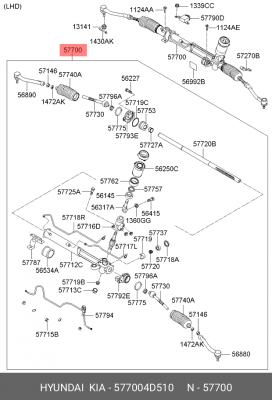 577004D510 HYUNDAI Рулевая рейка с тягами гидравлическая r26181nw