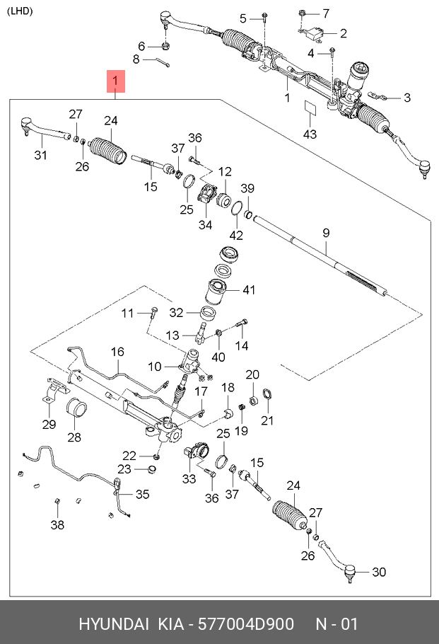 577004D900 HYUNDAI Рулевая рейка с тягами гидравлическая r26181nw
