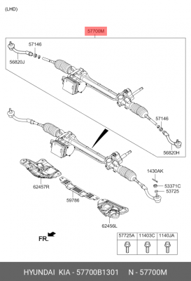 57700B1301 HYUNDAI Рулевая рейка с тягами электрическая e44861nw