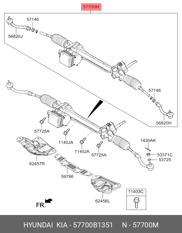 57700B1351 HYUNDAI Рулевая рейка с тягами электрическая e44281nw