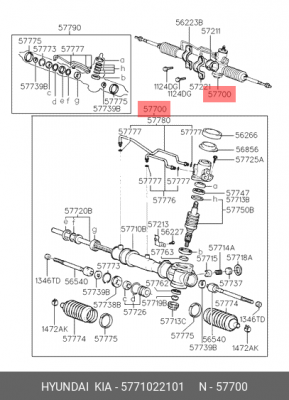 5771022101 HYUNDAI Рулевая рейка с тягами гидравлическая r23351nw