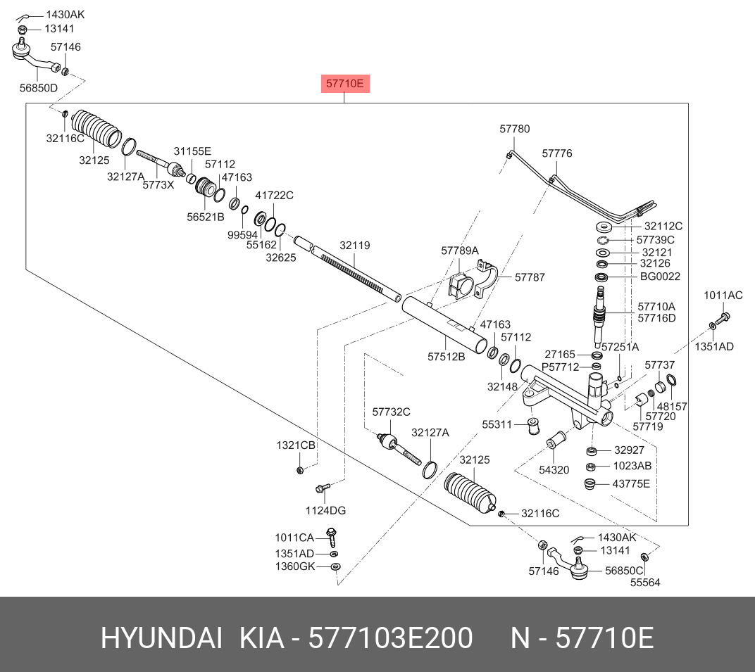 577103E200 HYUNDAI Рулевая рейка с тягами гидравлическая r20801nw
