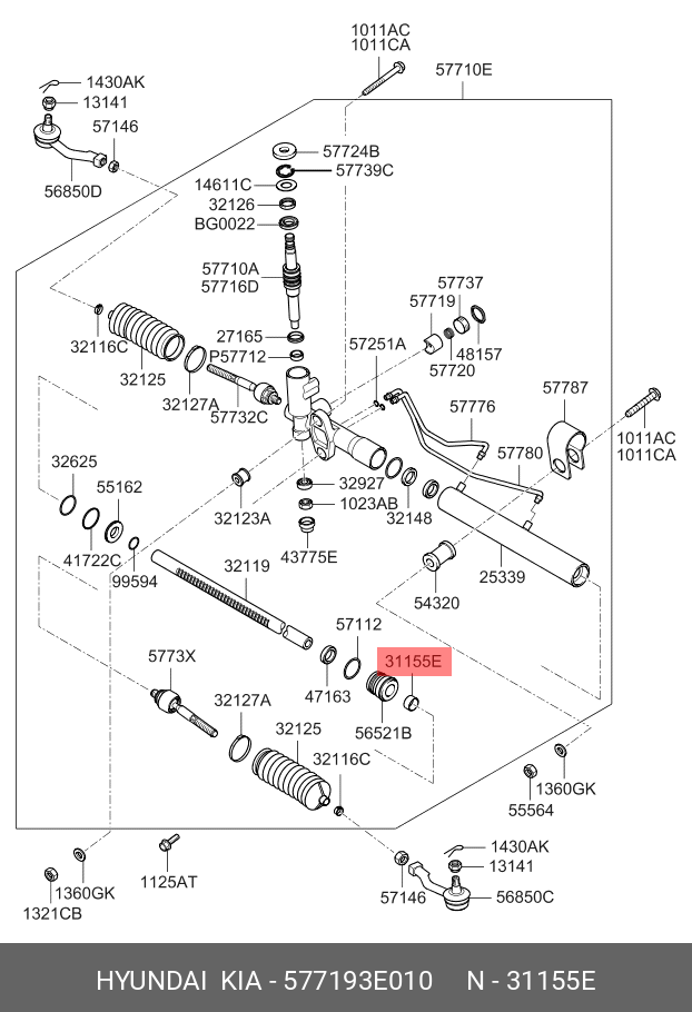 577193E010 HYUNDAI Втулка вала рулевой рейки hlv00331