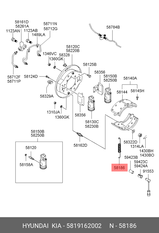 5819162002 HYUNDAI Пружина HYUNDAI HD120 колодок передних стяжная OE