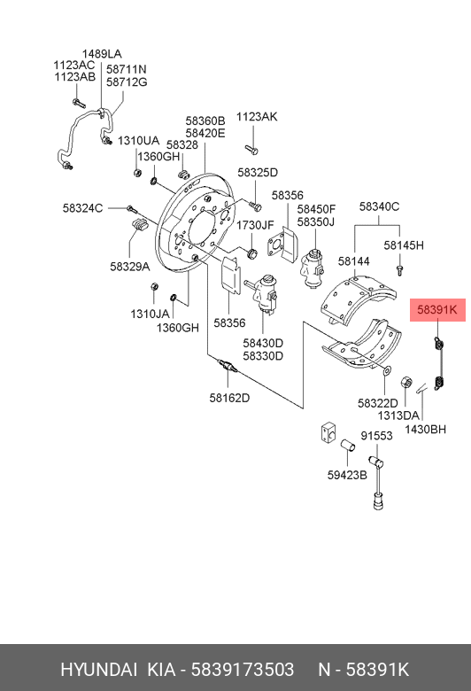 5839173503 HYUNDAI Пружина HYUNDAI HD120 колодок задних стяжная OE