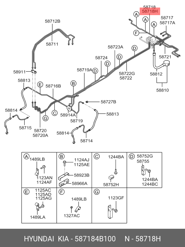 587184B100 HYUNDAI Трубка торм.HYUNDAI Porter задн.колес от лев.к прав. цилиндру OE