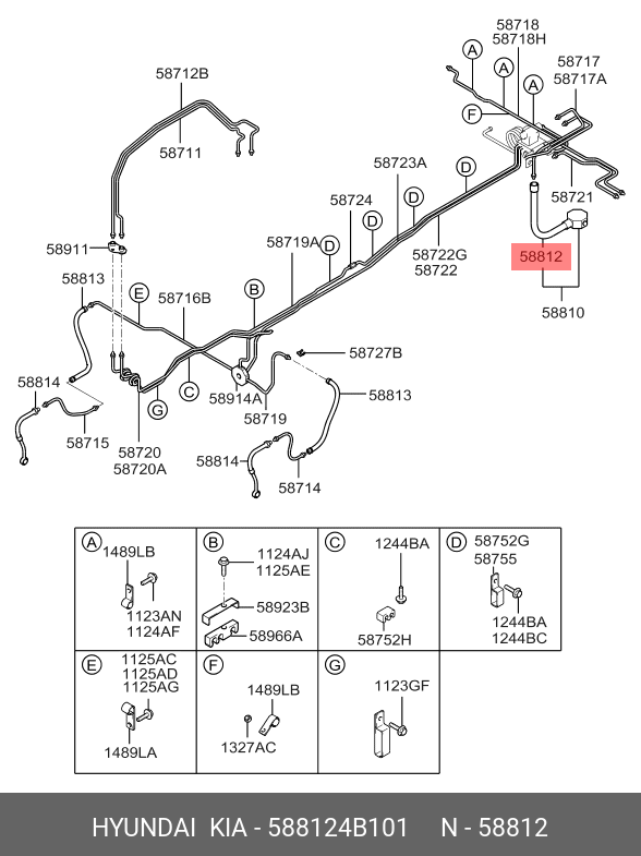 588124B101 HYUNDAI Шланг тормозной HYUNDAI Porter задний OE