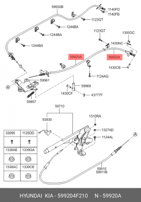 599204F210 HYUNDAI Трос стояночного тормоза HYUNDAI Porter 2 задний левый OE