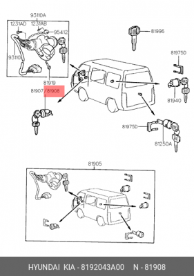 8192043A00 HYUNDAI Личинка HYUNDAI Porter замка прав.двери с ключом OE