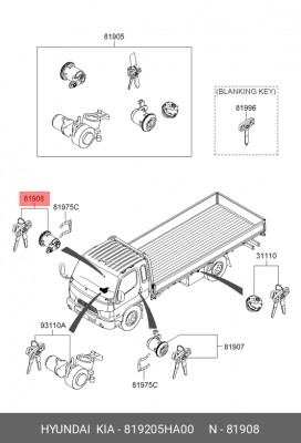 819205HA00 HYUNDAI Личинка HYUNDAI HD65,72,78 замка прав.двери с ключом OE