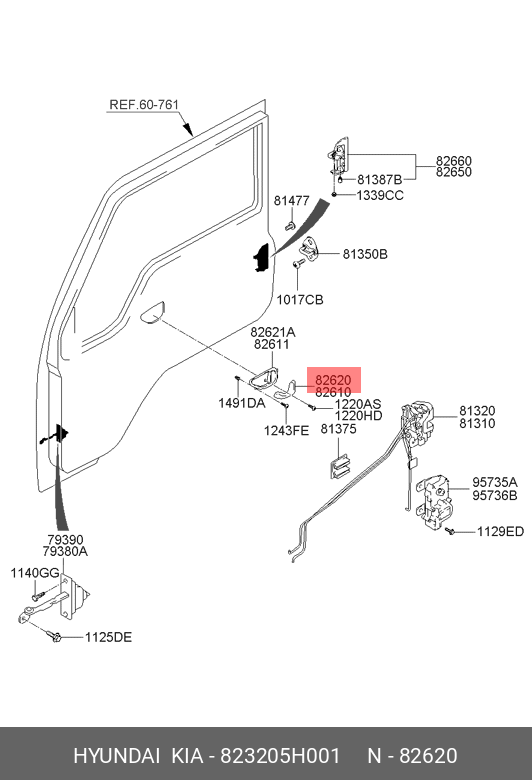 823205H001 HYUNDAI Ручка HYUNDAI HD65,72,78 двери внутренняя правая OE